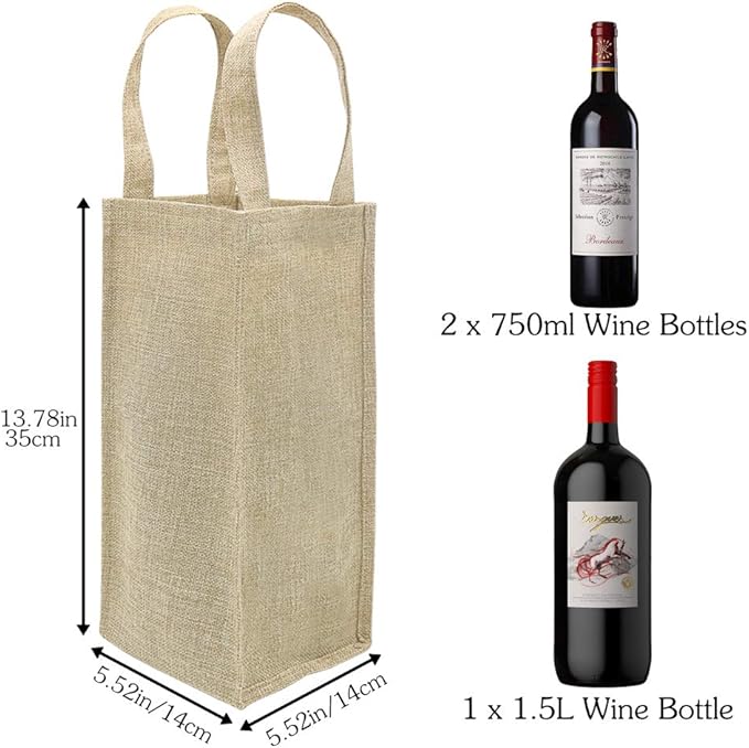 2 X Wine Gift Bags For 2 Bottles And 10 X Jute Wine Bags With Drawstring Jute Wine Tote Bag With Handles Fabric Wine Bottles Gift Bags Set